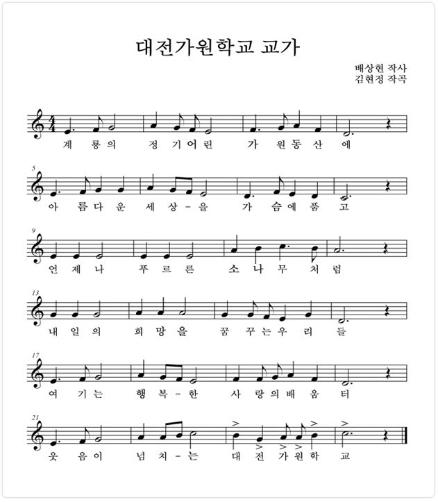한국인의 정서를 마음깊이 간직하고 언제나 변함없는 굳은 의지로 꿈을 키워 옳은 일에 앞장서는 변함없는 기상와 한결같은 가원학생의 마음을 표상.